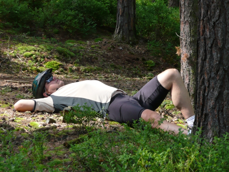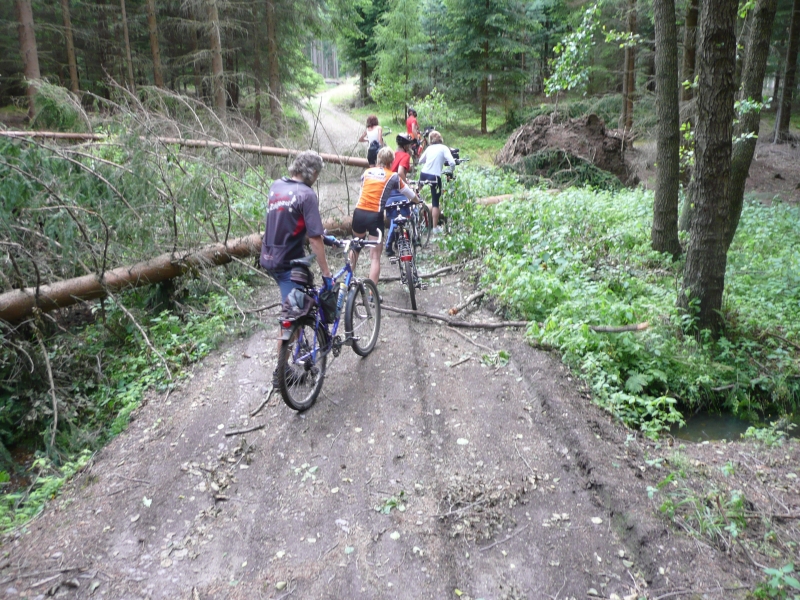 Ráno se vstávalo brzy. "Kos", který si prozpěvoval, se nedal přeslechnout. Bylo šest hodin a všichni už byli na nohách. Příprava švédských stolů netrvala dlouho a tak už jsme velice časně ráno seděli u snídaně. Po úklidu tábořiště jsme nasedli na své stroje a vyrazili opět po okolí. Neděle se odvíjela touláním po skalních útvarech, přelézáním popadaných stromů a sjížděním technických pasáží po kamenech a kořenech. Trasa jak dělaná pro Favority. Opět se nedalo odolat modrým kobercům borůvek, proto se nikdo neštval za honěním kilometrů a výlet pojal jako odpočinkový. Víkend byl zhodnocen jako příjemně strávený a přírodu lze jen doporučit k dalším výletům.